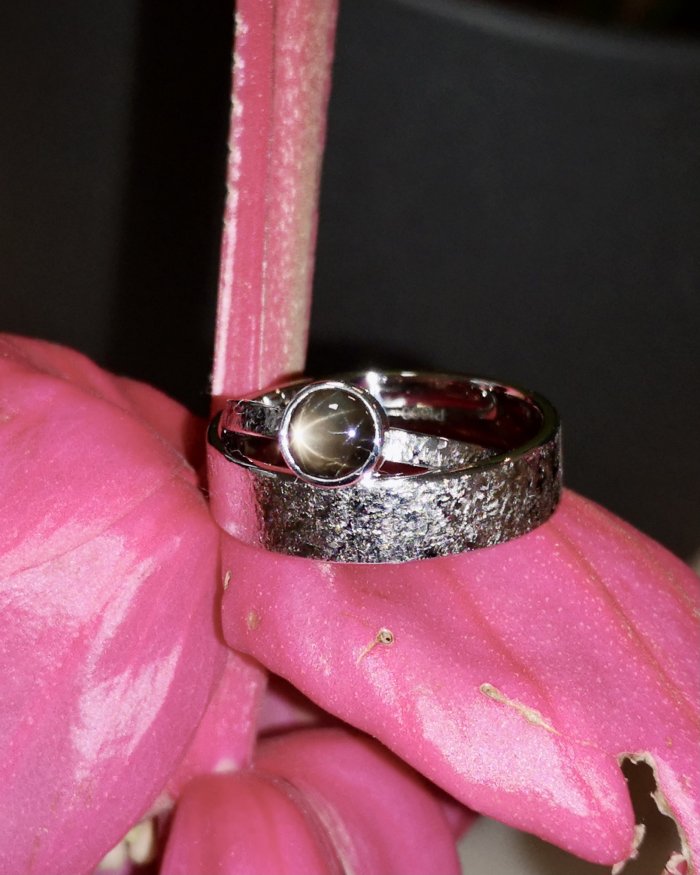 Ringe aus 600/00 Platin, geschmiedeter Oberfläche, Damenring mit Sternsaphir